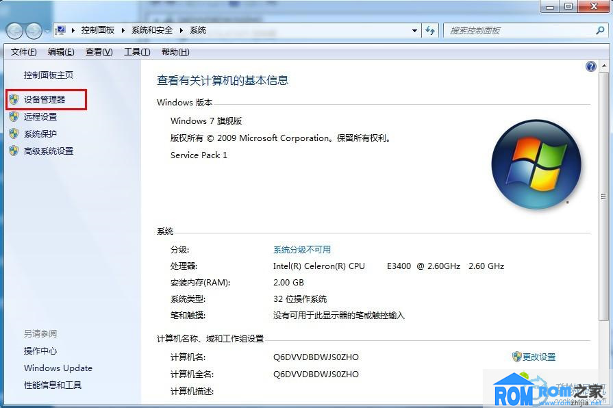 1、以window 7為例,右鍵點擊“計算機”然後點屬性,會打開如下界面,進入後先點入“設備管理器”