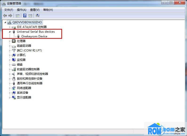2、打開界面後可以看到Universal Serial Bus devices,點擊後可以看到Onekeyrom Device