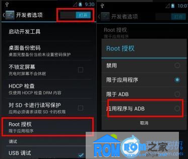選擇設置---開發者選項---Root授權---應用程序與ADB