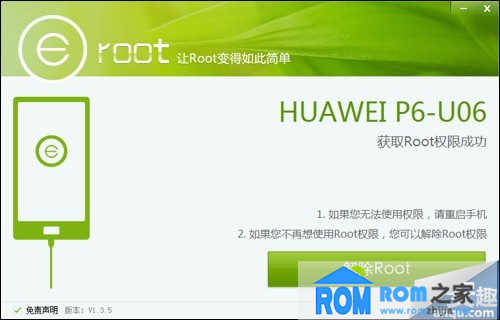 現在和大家分享的是華為P6一鍵ROOT教程及工具下載,獲取手機的最高ROOT權限對於很多玩機用戶來說那是必須的,不然在使用過程很多操作就會變得不方便起來,甚至有時候還會因為沒有ROOT而操作不了,比如刪除那些看著多余又占空間的系統預置軟件,因此,rom之家小編這裡就帶來了這個操作簡單小白的華為P6一鍵ROOT教程,同時附上華為P6一鍵ROOT工具下載地址,不清楚華為P6怎麼ROOT,沒關系,快來這裡按教程操作ROOT成功就是分分秒的事情。