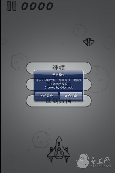 5.啟動微信打飛機游戲,點擊暫停,就可以看到飛機大戰無敵模式的開啟/關閉菜單