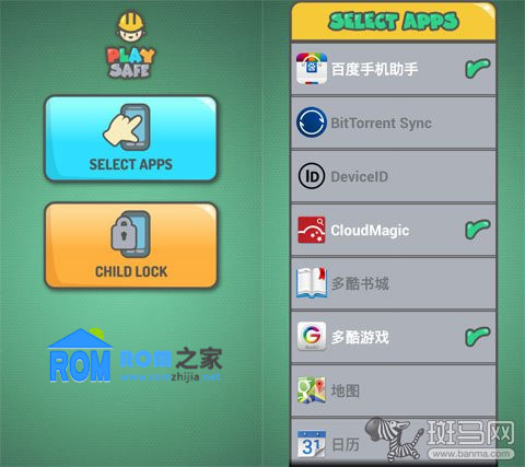 進入主界面以後,點擊“SELECT APPS”就可以選擇你想讓小輩們看到的APP,選好以後點擊手機的返回鍵就可以了。然後點擊“CHILD LOCK”就可以放心的把手機給小孩玩了。