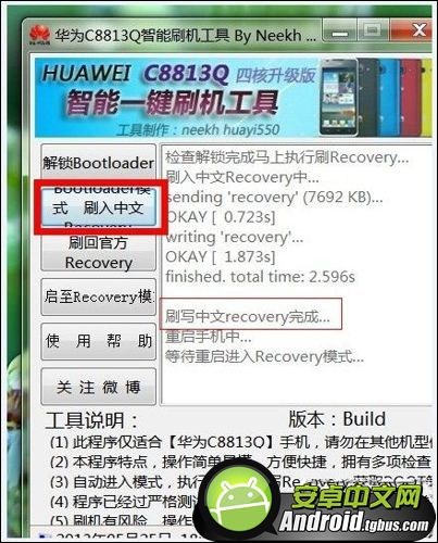第三步:ROOT操作過程:附件:【華為C8813Q解鎖工具下載】