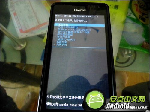 當出現上述截圖內容中的提示,提示刷寫中文REC完成後,就可以關閉工具和拔出手機了。完成後,進入REC模式的截圖(這就是中文REC了):
