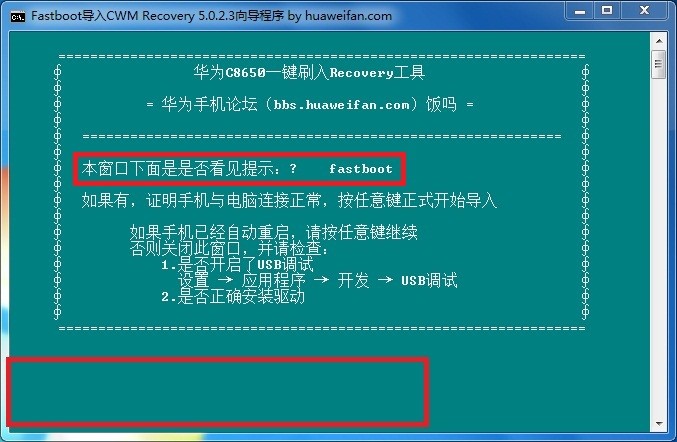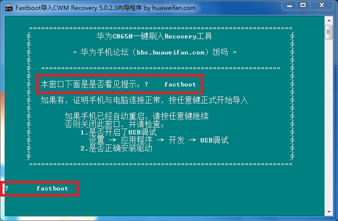 如果這步沒出現有提示:? fastboot,說明手機沒有進入bootloader模式。如下圖片所示:
