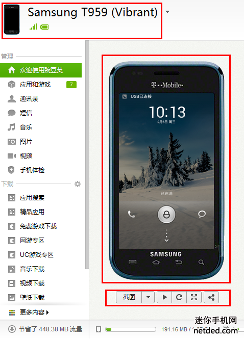 下面以三星t959手機為例子來說一下連接成功的標志: