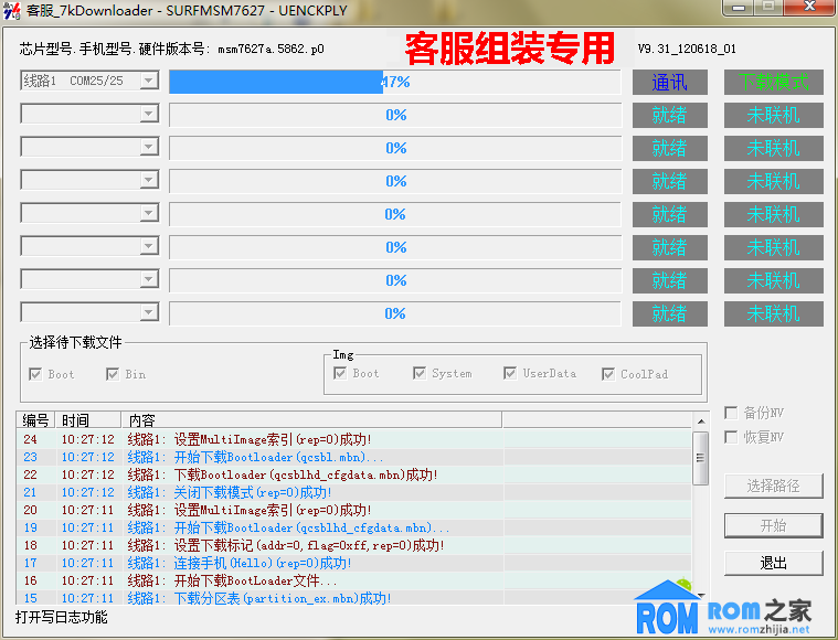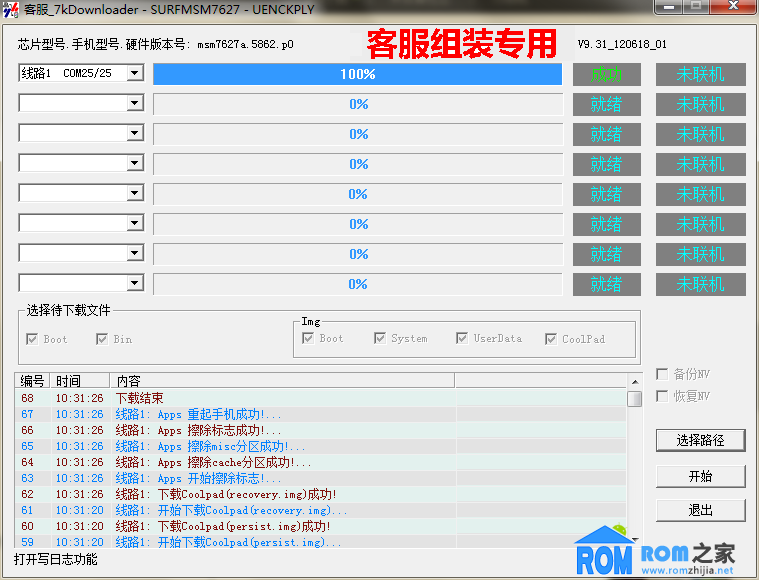 刷機完成後組裝客服會顯示綠色的“成功”並自動重啟手機