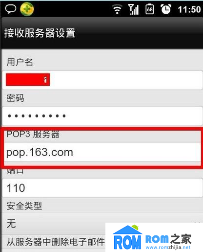 5.選擇pop3服務器後,就是設置服務器,163的pop3服務器是pop.163.com.像這種服務器一般可以在網上查到,端口這裡是110,我們保持不變。