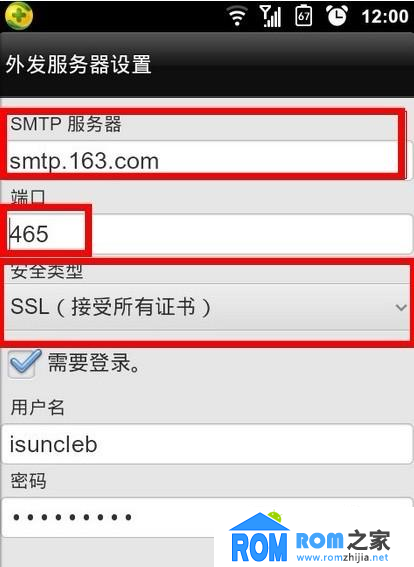 6.點擊下一步進入到外發服務器設置,在smtp服務器設置時寫上,smtp.163.com,端口號是465(這個我在官網查了下有兩個端口可用還有一個是994,但我試了下登不上去) ,安全類型選擇ssl(接受所在證書)