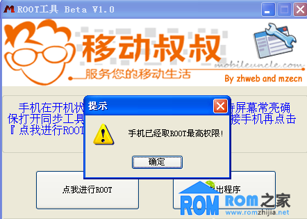 4.運行解壓後的一鍵root.exe,點擊ROOT選項,會自動ROOT手機