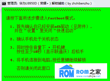 第二步:手機進入fastboot第一屏 也就是停止在wo的界面 (不要連接數據線) 然後打開解鎖工具。