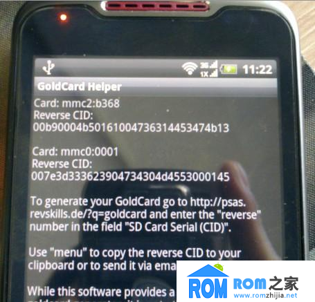 3、手機上運行GoldCard Helper,這時候手機應該裝的是用來制作GoldCard的那張卡。算出Reverse CID,記錄所顯示“Card:mmc2:xxxx”之後的Reverse CID(類似於“532600bd227d9c0347329407514d5420”);