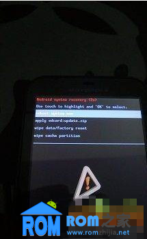 選擇“wipe data/factory reset”那一項,然後點屏幕左下角的OK,這時會提示你“yes”還是“no”;選“yes”那一項然後再按ok 就會如下圖開始wipe: