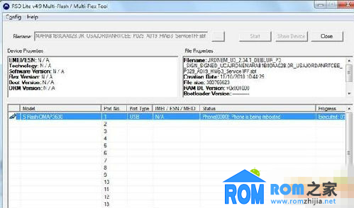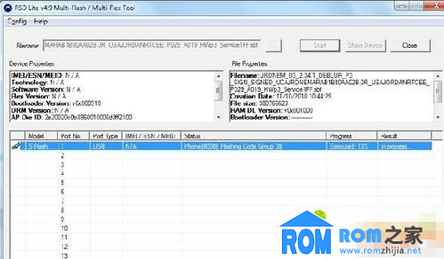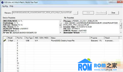 點最上面的按鈕(上圖的紅圈處),選擇一個sbf文件,也就是要刷的rom文件,然後點Start開始刷機。