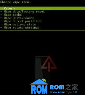 刷機前,先進入WIPE項:進入後如下圖:(刷RADIO的不用進,跳過這步)