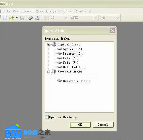 這裡需要注意的是把 Open as Readonly 在打開的時候不要選中,否則存儲卡是無法編輯的。
