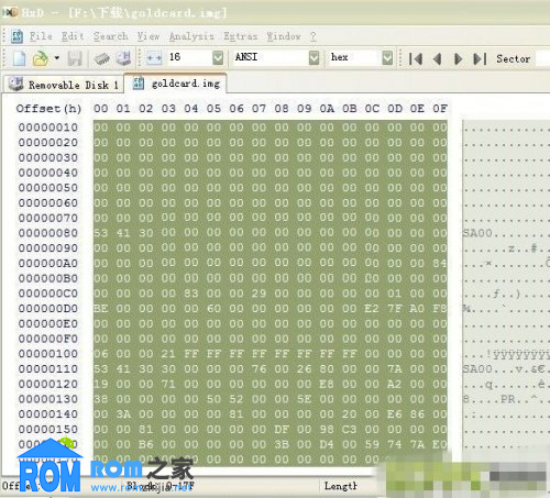 然後切換到剛才打開的存儲卡頁面,把光標放到第一個區塊位置(Block:0-0 Length:1),