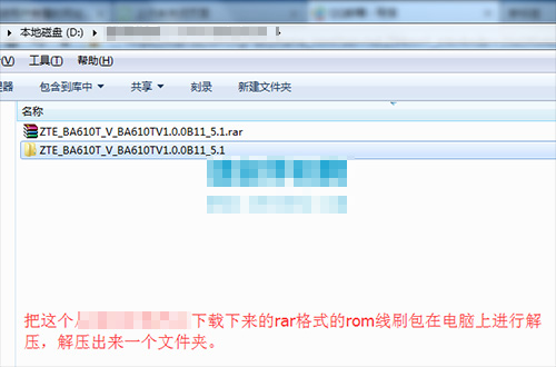 2:下載中興BA610T的線刷包,把下載下來的rom線刷包先進行解壓,直接放到電腦的D盤根目錄下解壓,解壓出來一有個文件夾: