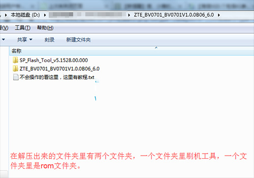 2:把上面下載下來的文件包先進行解壓,解壓出來一有個文件夾,文件夾裡還有兩個文件夾,一個文件夾裡是刷機工具,一個文件夾裡是rom文件: