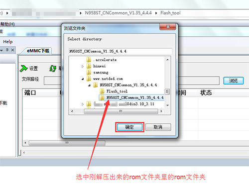 3:打開安裝好的刷機工具軟件,然後點擊【浏覽】按鈕選擇剛才解壓出來的rom文件夾裡的文件夾,然後點擊確定按鈕。