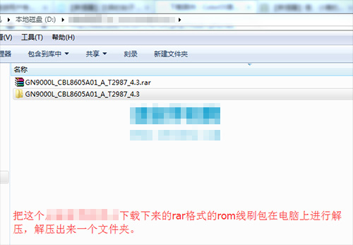 1:下載金立GN9000L第三方的線刷包,把下載下來的rom線刷包放到電腦的D盤或E盤根目錄下解壓,解壓出來一有個文件夾: