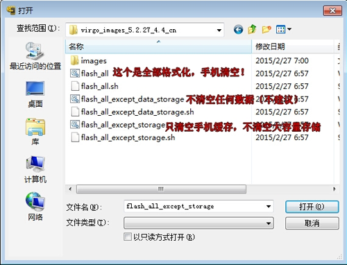 8:然後在彈出界面找到線刷包位置,進去選擇腳本, 裡面提供了三個.bat文件,選中其中一個就可以了,選擇後點擊確認,其他不用管。