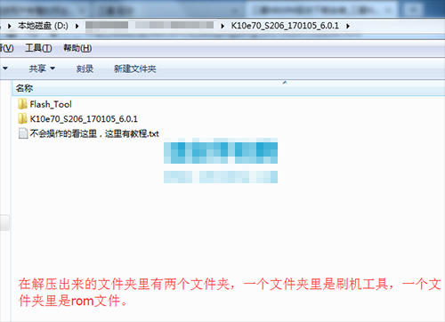 1:把上面下載下來的線刷格式的rom包在電腦上進行解壓,解壓出來一個文件夾,文件夾裡面還有兩個文件夾,一個文件夾裡是刷機工具,一個文件夾裡rom文件。