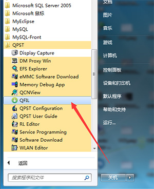 3:打開安裝好的刷機工具QFIL,依次點擊開始 -> 所有程序 -> QPST -> QFIL: