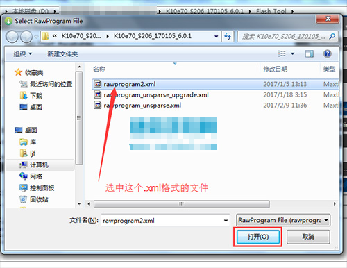 5:點擊“Load XML…”,直接選擇彈出框的“rawprogram0.xml”文件並點擊打開。