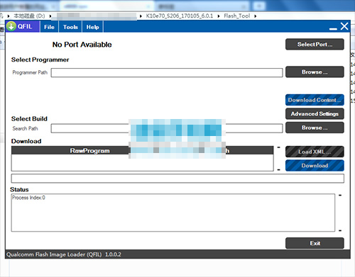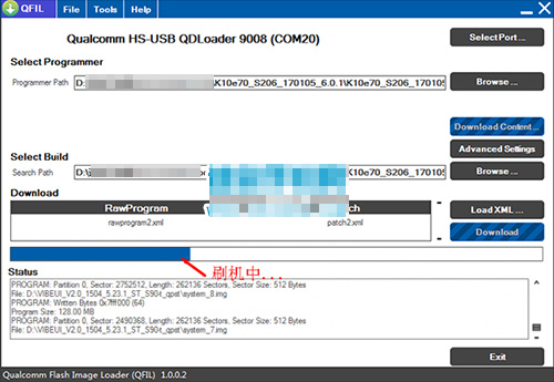 7:手機處於關機狀態,按住音量下鍵再插入數據線,直接進入9008端口(或者按住音量上鍵,在插入USB線的同時,按電源鍵)然後馬上點擊【Download】按鈕,則進入升級界面: