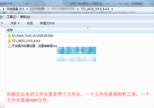 2:把上面下載下來的文件包先進行解壓,解壓出來一有個文件夾,文件夾裡還有兩個文件夾,一個文件夾裡是刷機工具,一個文件夾裡是rom文件: