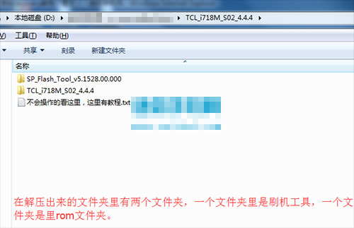 2:把上面下載下來的文件包先進行解壓,解壓出來一有個文件夾,文件夾裡還有兩個文件夾,一個文件夾裡是刷機工具,一個文件夾裡是rom文件: