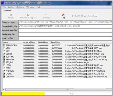 2、在刷機工具選項中點擊Option勾選USB Mode、DA Download All、兩個選項。