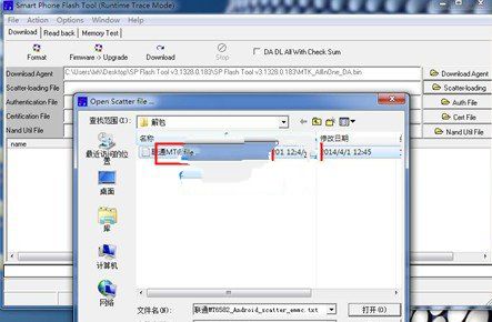 3,點擊右上邊“Scatter-loading”,再點選“線刷包”文件夾中的後綴為“.txt”格式的文件。