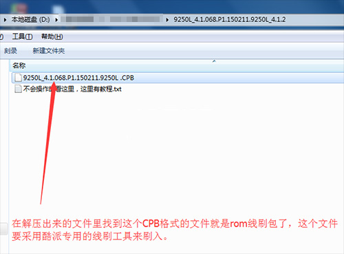 1:先把上面下載下來的固件rom包在電腦上進行解壓,如下圖,在解壓出來的文件夾裡看到裡面有一個.CPB格式的文件,這個就是線刷格式的固件包。