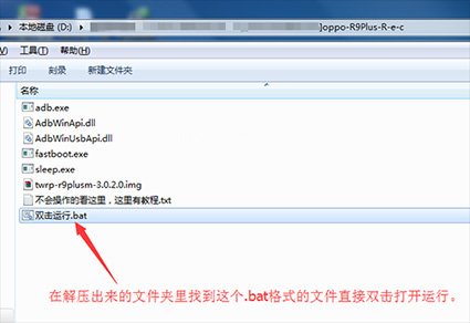 3:然後把上面下載下來的recovery工具包在電腦上進行解壓,解壓出來一個文件夾,然後在文件夾裡找到【雙擊運行.bat】文件,直接雙擊打開運行,然後根據提示輸入1接著按回車鍵先進行解鎖,【注意:手機上會提示你刪除數據,確認刪除就可以了】,解鎖成功之後,再輸入2並按回車鍵開始刷入recovery了。