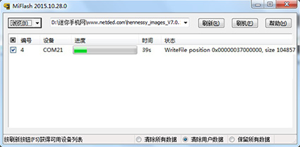 5:然後點擊“刷新”按鈕,接著再點擊“刷機”按鈕就開始給手機線刷了。