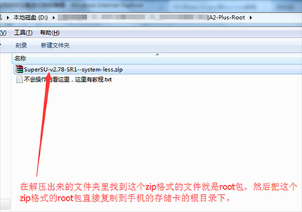 1:手機用usb數據線連接上電腦之後,把上面下載下來的rar格式的root包在電腦上進行解壓,解壓出來一個文件夾,然後在解壓出來的文件裡的找到【SuperSU-v2.78-SR1--system-less.zip】包復制到手機的sd卡的根目錄下方便找到。