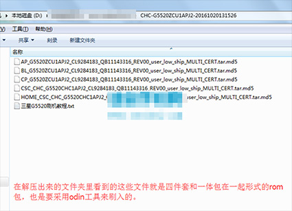 3:下載三星G5520的固件rom包,下載下來進行解壓,如果解壓出來直接是md5格式的就不用再解壓了。