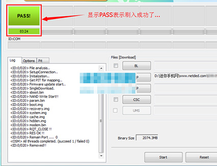 6:刷完之後,上面會顯示【PASS】字樣就表示刷入成功了。
