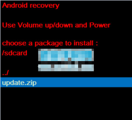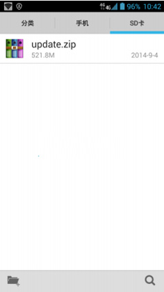 5:然後在出現的列表中選擇“update.zip”文件,然後按開機鍵進行確認,之後就開始刷機了。