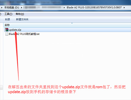 1:下載中興Blade A2 Plus的官方rom固件包,下載下來後先解壓,解壓出來一個文件夾,然後在文件夾中找到update.zip文件。