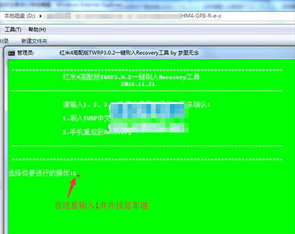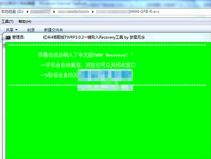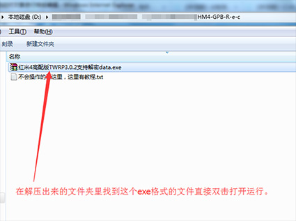 3:然後把上面下載下來的recovery工具包在電腦上進行解壓,解壓出來一個文件夾,然後在文件夾裡找到【紅米4高配版TWRP3.0.2支持解密data.exe】文件直接雙擊打開運行,直接按回車鍵即可。