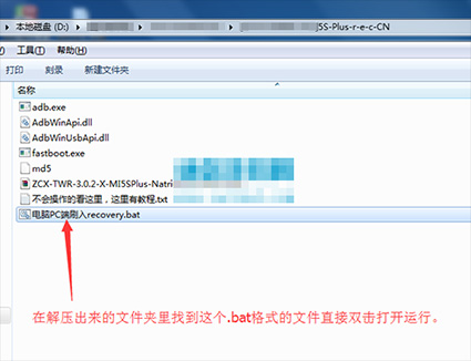 3:然後把上面下載下來的recovery工具包在電腦上進行解壓,解壓出來一個文件夾,然後在文件夾裡找到【電腦PC端刷入recovery.bat】文件直接雙擊打開運行,直接按回車鍵即可。