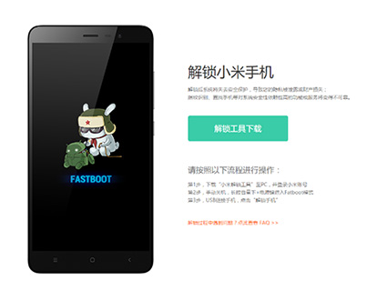 5:接著讓你的小米Note2完全關機後,同時手機在關機的狀態下長按手機的“音量減少鍵 + 電源鍵”,兩鍵同時按住不要松,進入小米Note2的Fastboot模式(有個兔子的界面就是了),(手機系統必須為MIUI開發版,穩定版無法解鎖),然後數據線插入手機和電腦聯機,點擊“解鎖”。