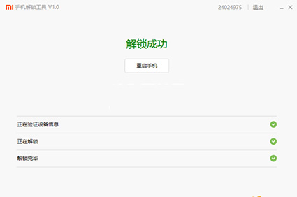 6:預計10秒鐘左右,完成解鎖,然後會有解鎖成功的提示,如下圖: