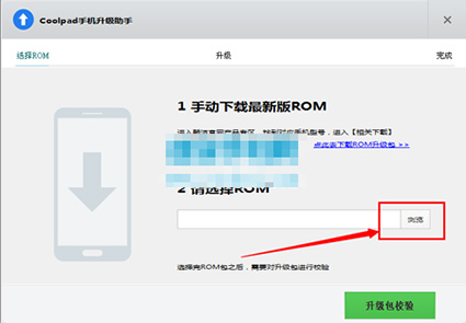3:打開咱們安裝好的Coolpad Download Assistant軟件,然後在軟件上點擊浏覽,選擇我們剛才下載並解壓出來的CPB格式的固件rom包。