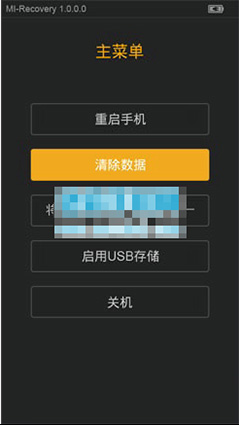 3:選擇簡體中文並確認,在recovery界面裡 音量鍵表示選擇 電源鍵表示確認,咱們用用音量鍵選擇第二個,清除數據,按一下電源鍵確認進入,然後用音量鍵選擇上方三個清空的選項,這就是三清,按電源鍵確認,依次清除。