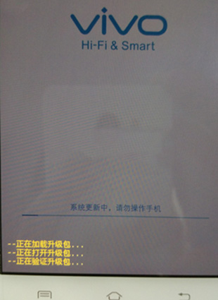 3:接著再把手機關,手機在關機狀態下同時按住電源鍵和音量上鍵,直到出現vivo的字樣再松開,手機自動進入recovery模式。