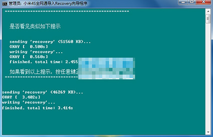4:接著直接按回車鍵即可自動刷入recovery了,刷入完成之後會有提示的。